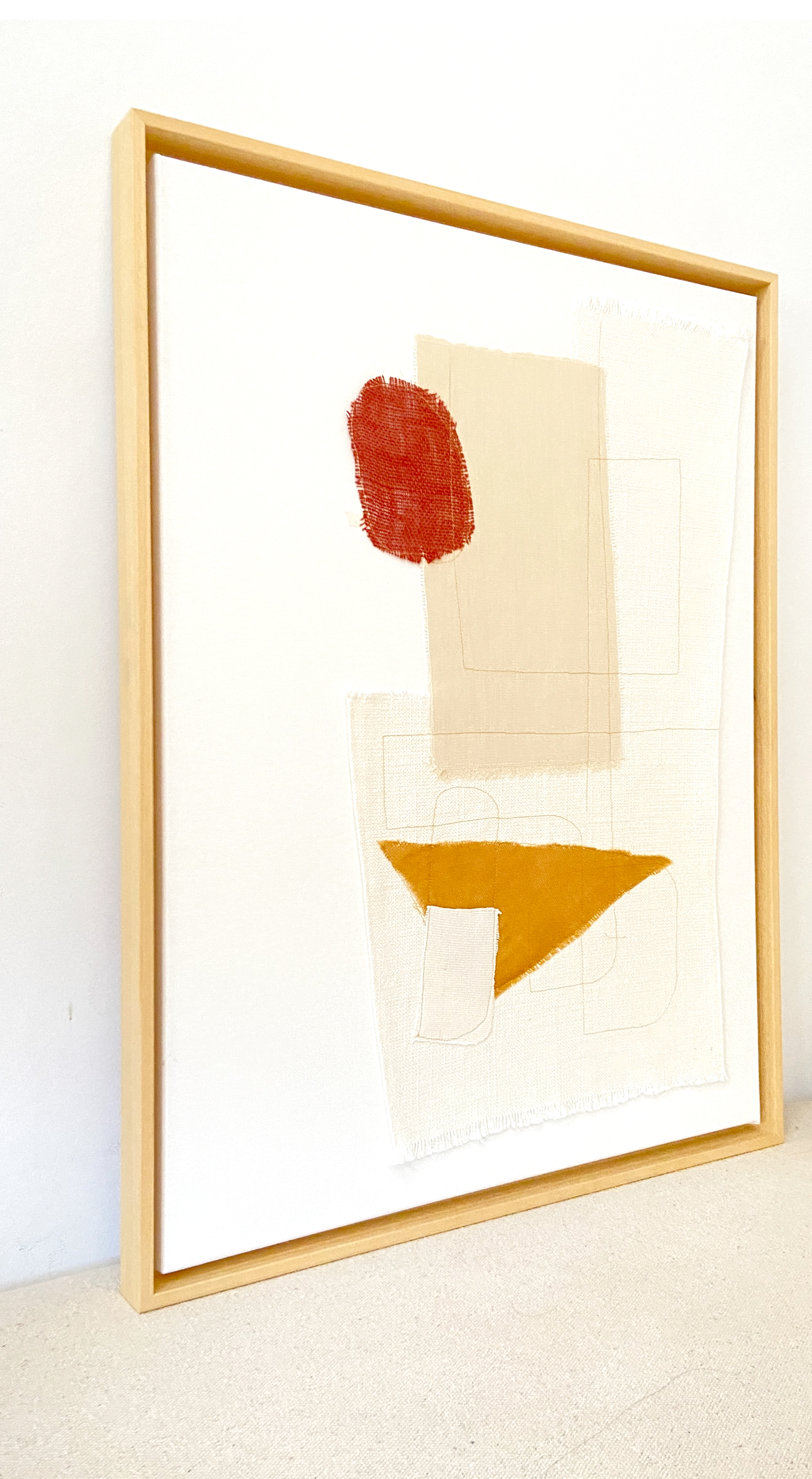 loneta, arpillera granate y tarlatana naranja sobre tela antigua